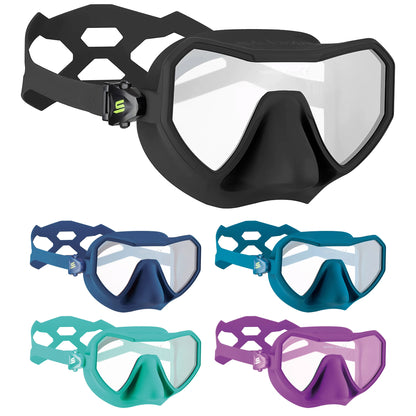 Salvimar Neo er en maske i eksklusivt italiensk design, med sammenhengende temperert glass (monoglass)