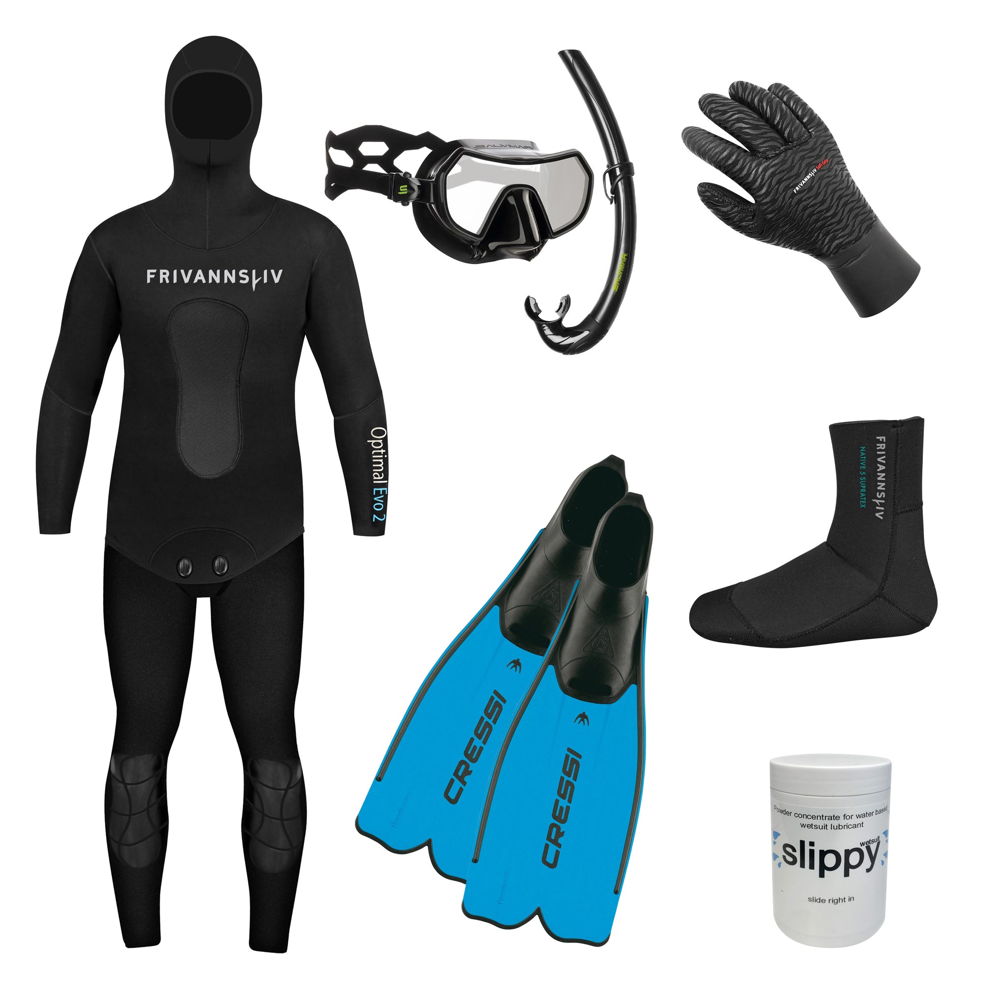Denne pakken er og et fint sted å starte dersom du senere vil begynne med fridykking, da må du bare supplere med blylodd, blybelte og fridykkerbøye. Du kan også kjøpe dette ekstrautstyret som en pakkeløsning.