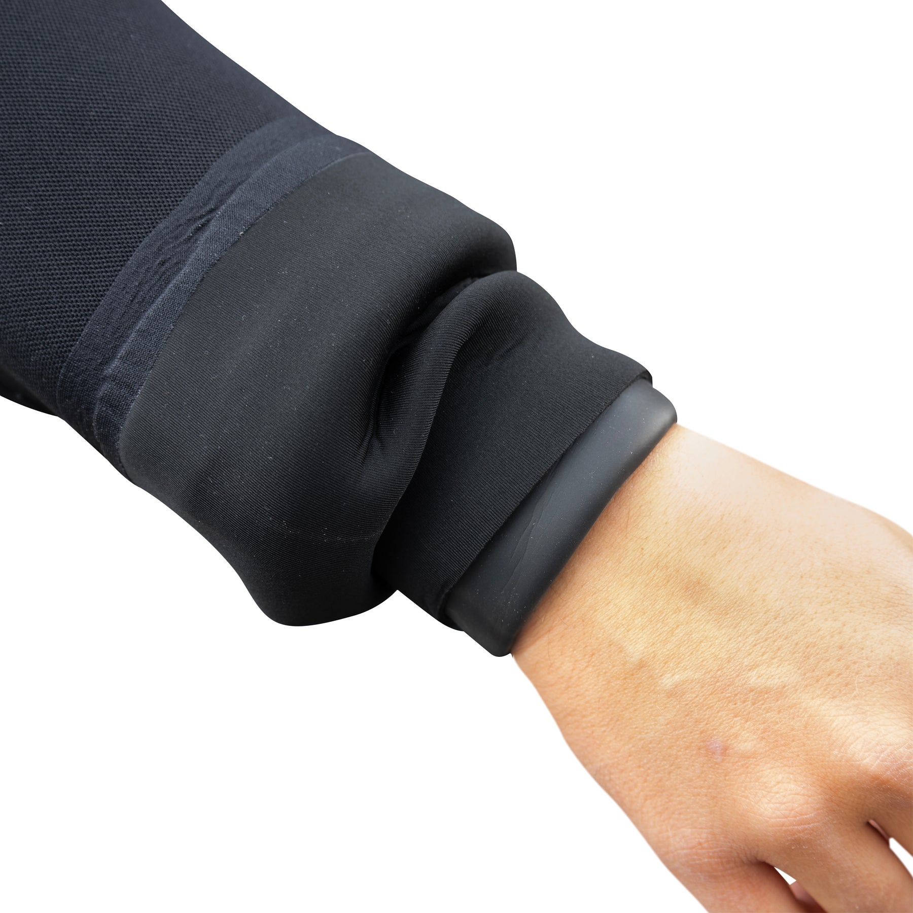 Arm-mansjettene er doble neopren tuck-in.