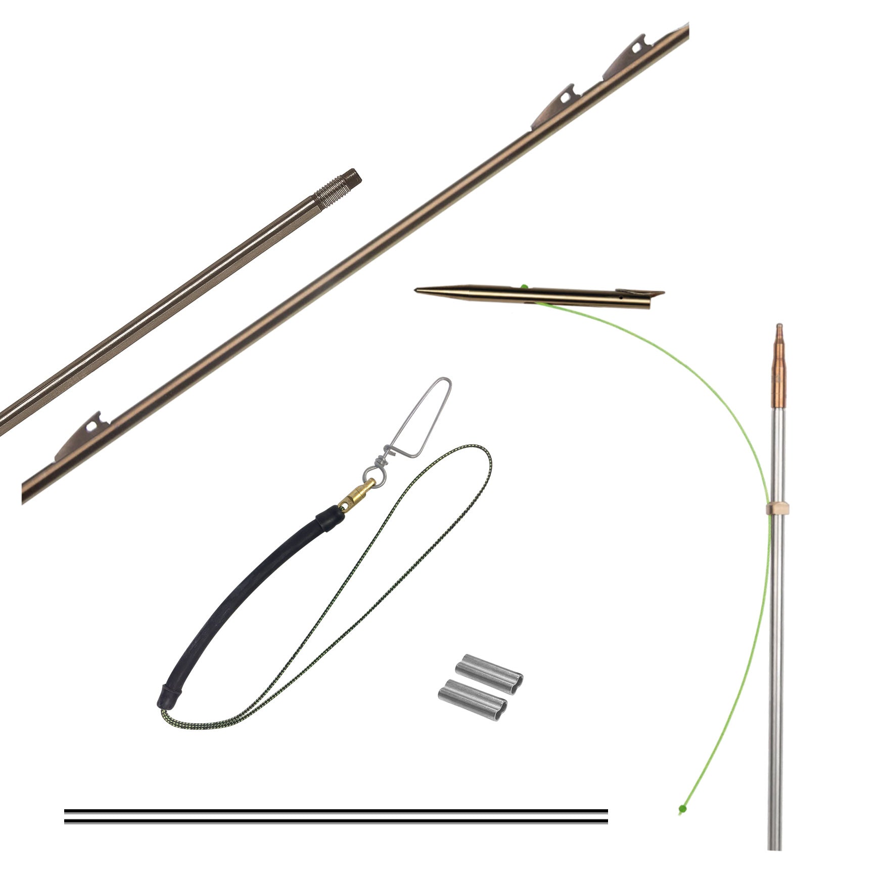 Pakken inneholder en gjenget pil, slip tip pilspiss til harpunpilen, harpunline, lineklemmer og rykkdemper. Dette oppsettet kan kun brukes på kraftige harpuner, hvis du er usikker på om dette kan brukes på din harpun så ta kontakt med oss.