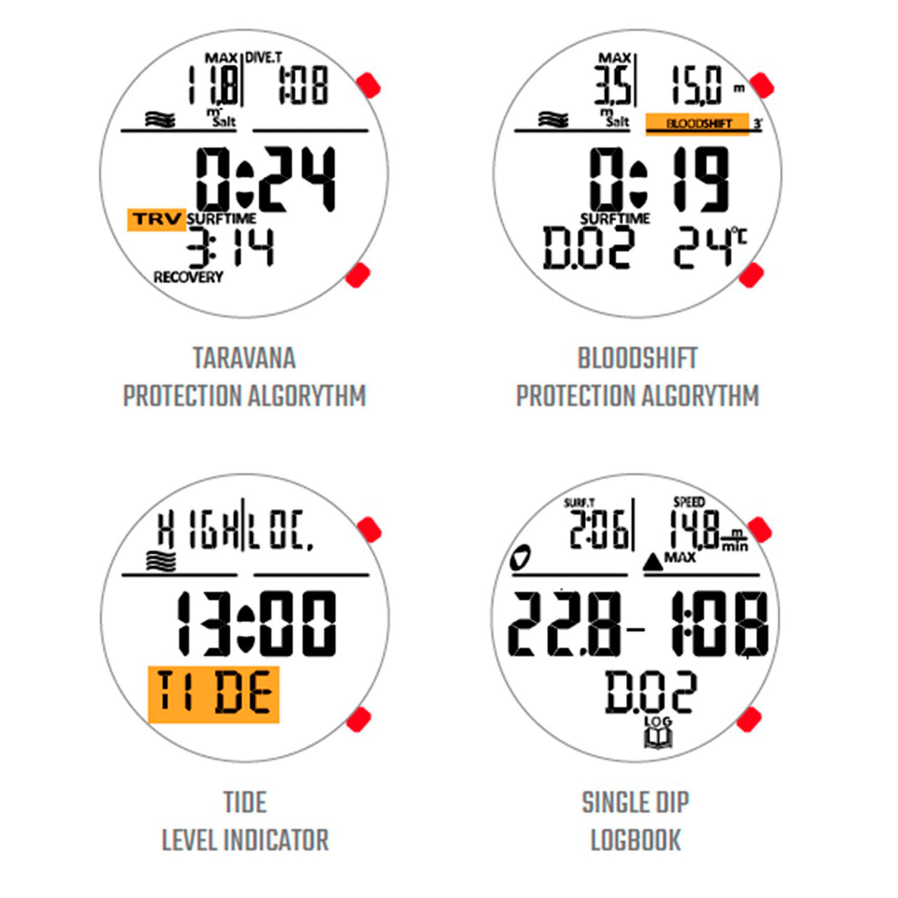 Et innovativt produkt med helt ny algoritme utviklet av Cressi. Algoritmen er blant annet utviklet for å beskytte fridykkeren mot risikoen for Taravana(dykkesyke) og lungeødem.