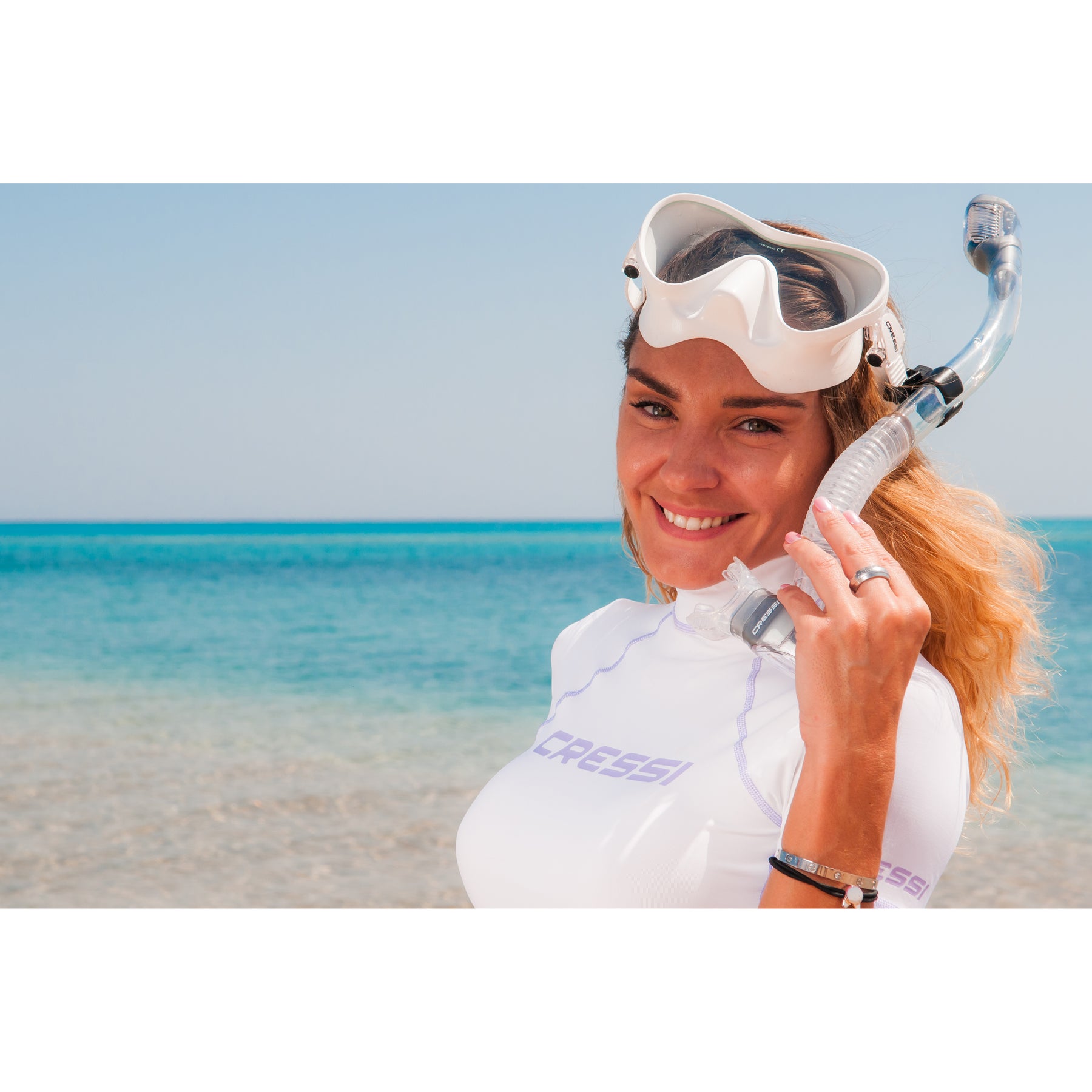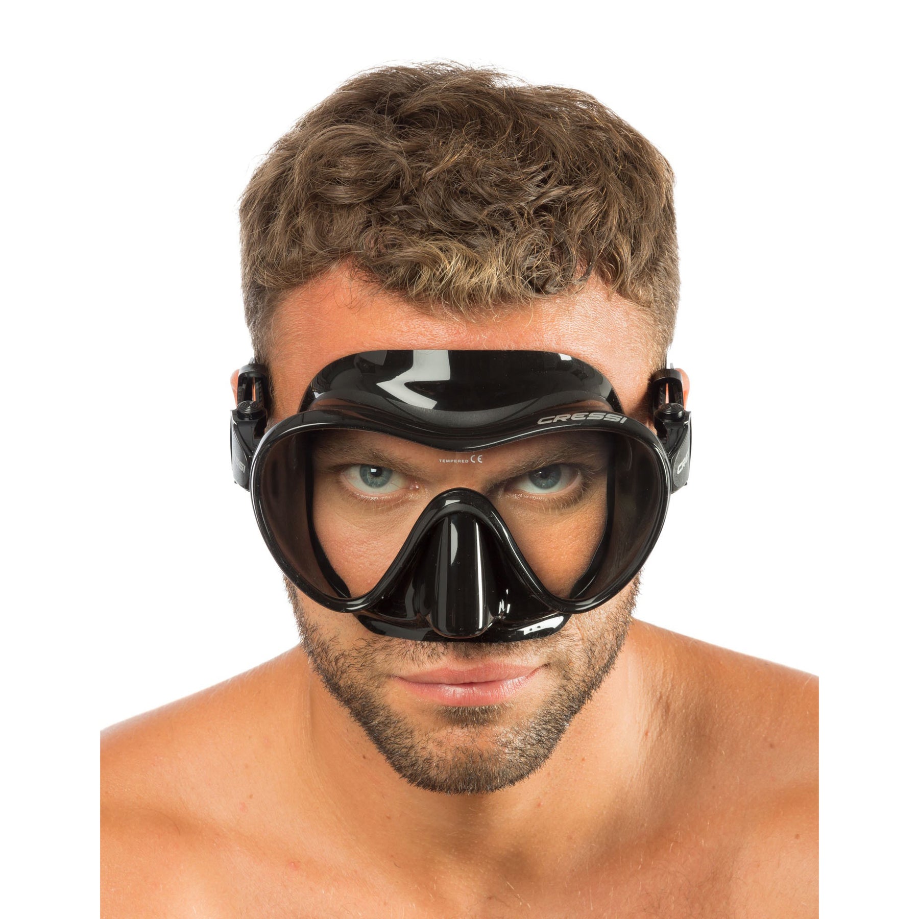 Frameless-masker er elsket av mange dykkere for deres lavprofil og evne til å brette seg flat, og ikke minst gi stort synsfelt på grunn av den kommer så tett i ansiktet. Cressis rammeløse design forbinder et høyverdig silikonkjørt direkte til en enkelt linse. Enkelt og genialt. Det lave innvendige volumet muliggjør enkel rensing(fjerning av dugg) og hurtig justering av stroppespenne, som er støpt direkte inn i skjørtet for en fleksibel passform og redusert drag.