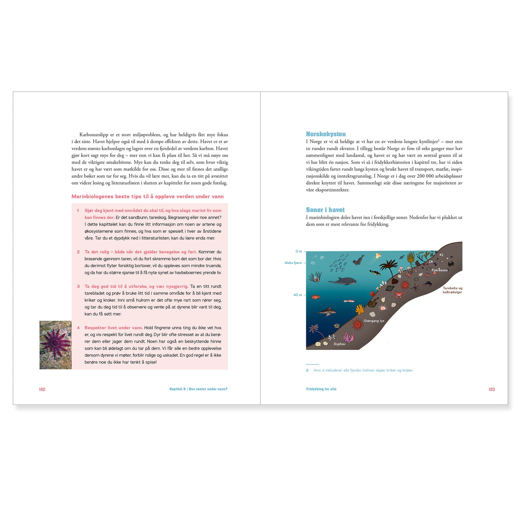 Uavhengig om du vil dra på snorklesafari, sanke skjell og tang, jakte fisk eller nyte vannet, vil du finne noe du liker i denne boken. Målet er å gi deg inspirasjon og kompetanse til holde på med fridykking på en trygg måte.
