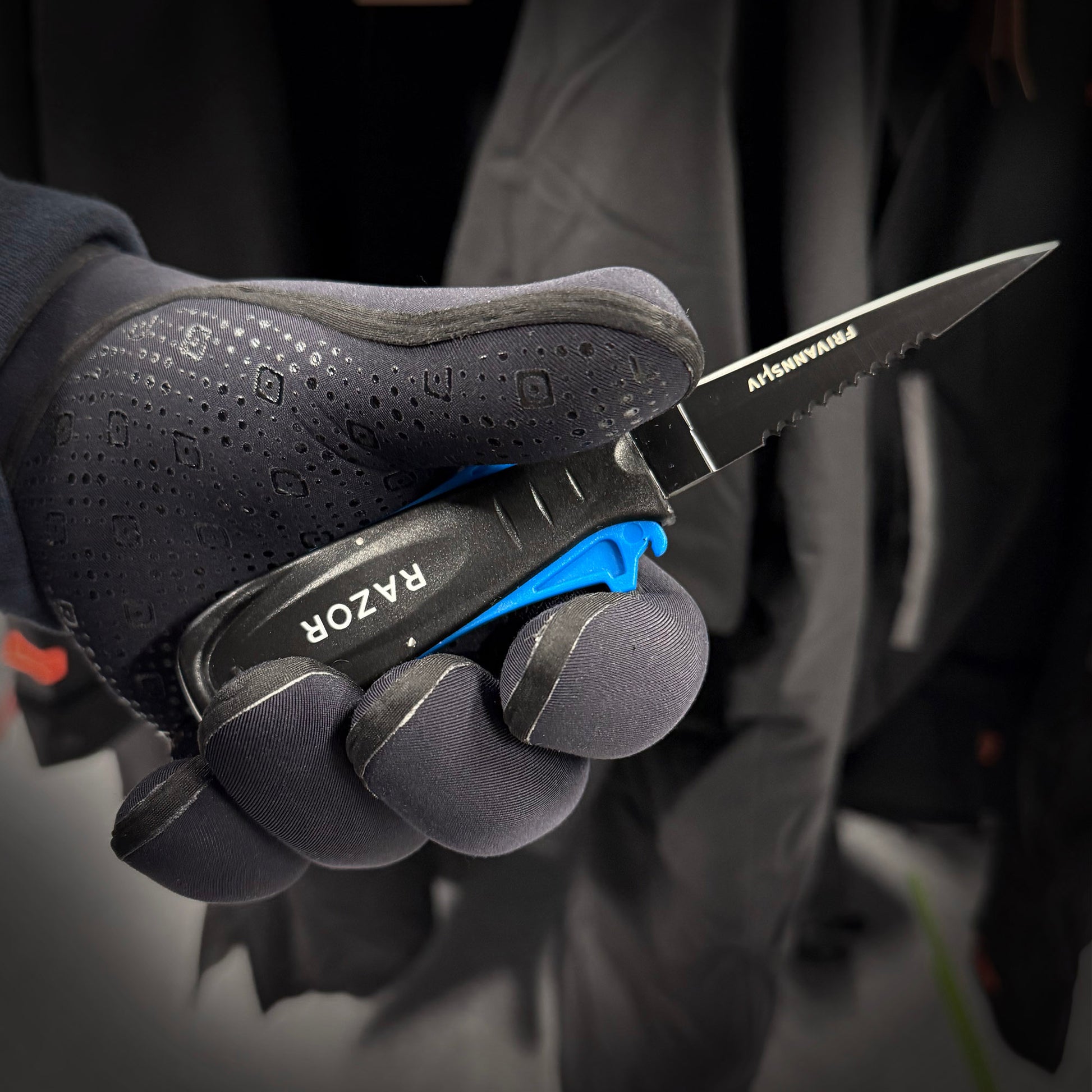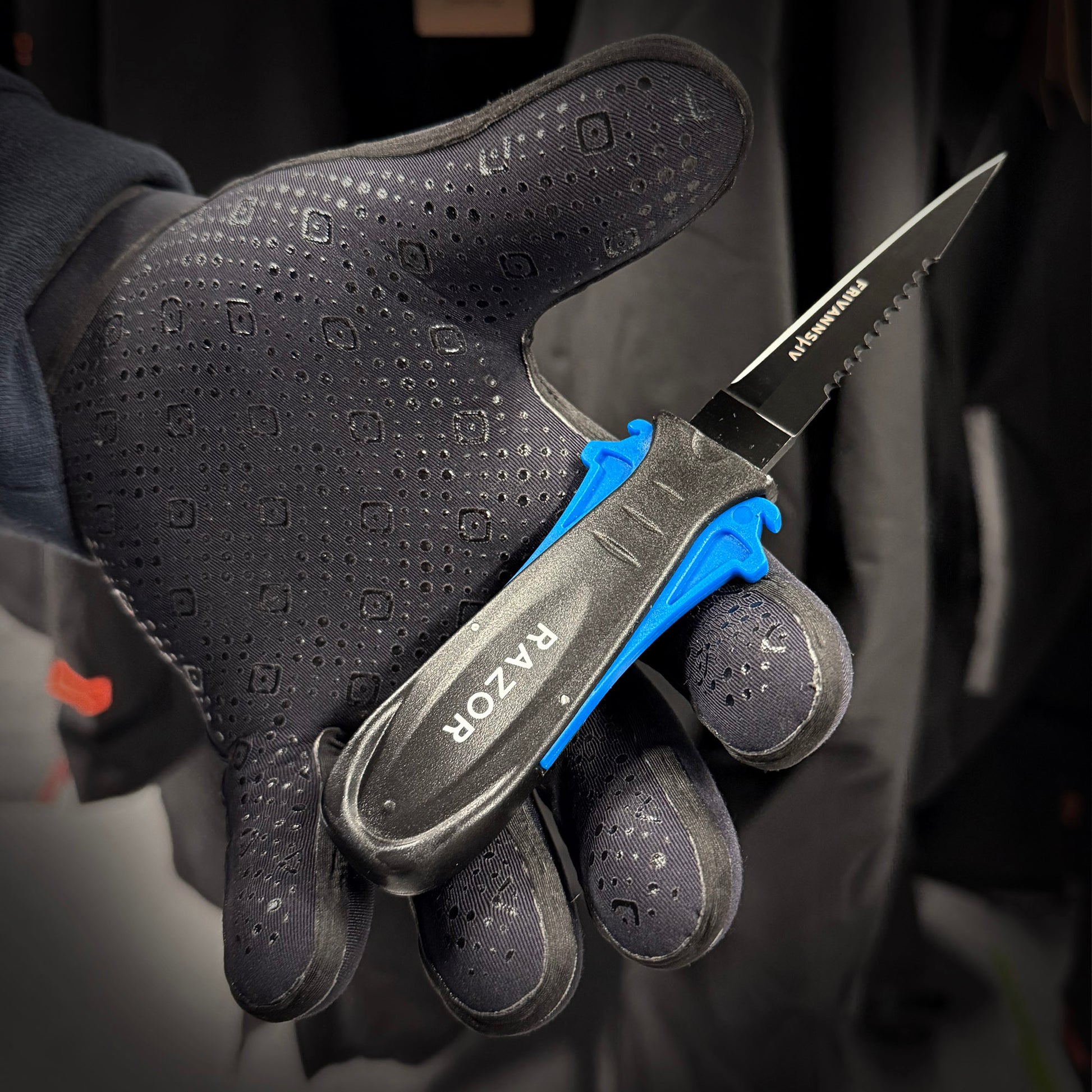 Vedlikehold: Som på alle dykkekniver bør en alltid skylle kniven i ferskvann og la den tørke utenfor sliren for å sikre lang levetid. Bruk gjerne GearAid Silicon grease på dykekkniven din som en ekstra beskyttelse mot rust. Les vår artikkel om vedlikehold av kniver her.