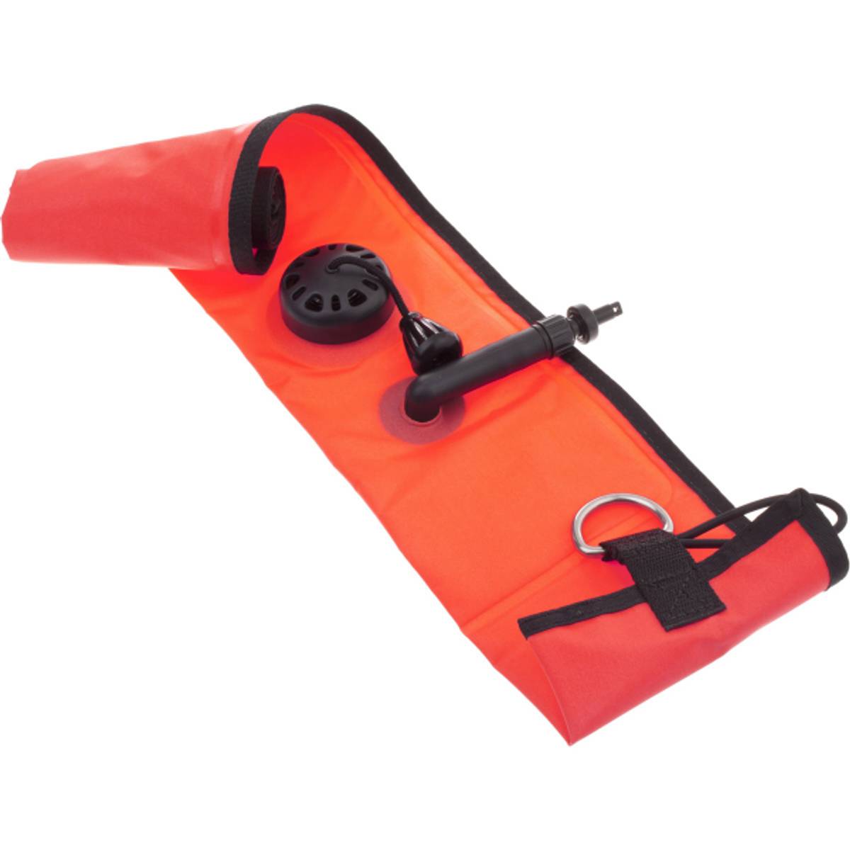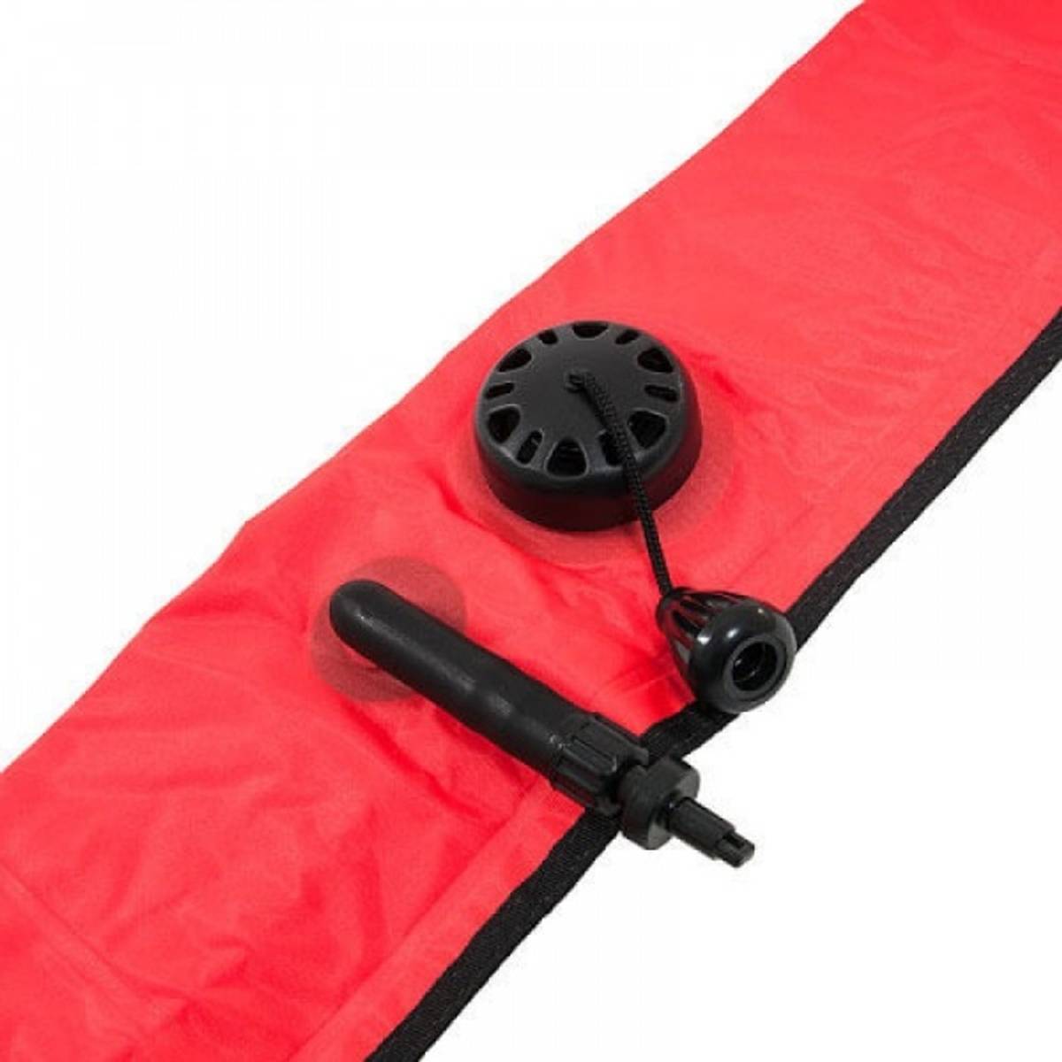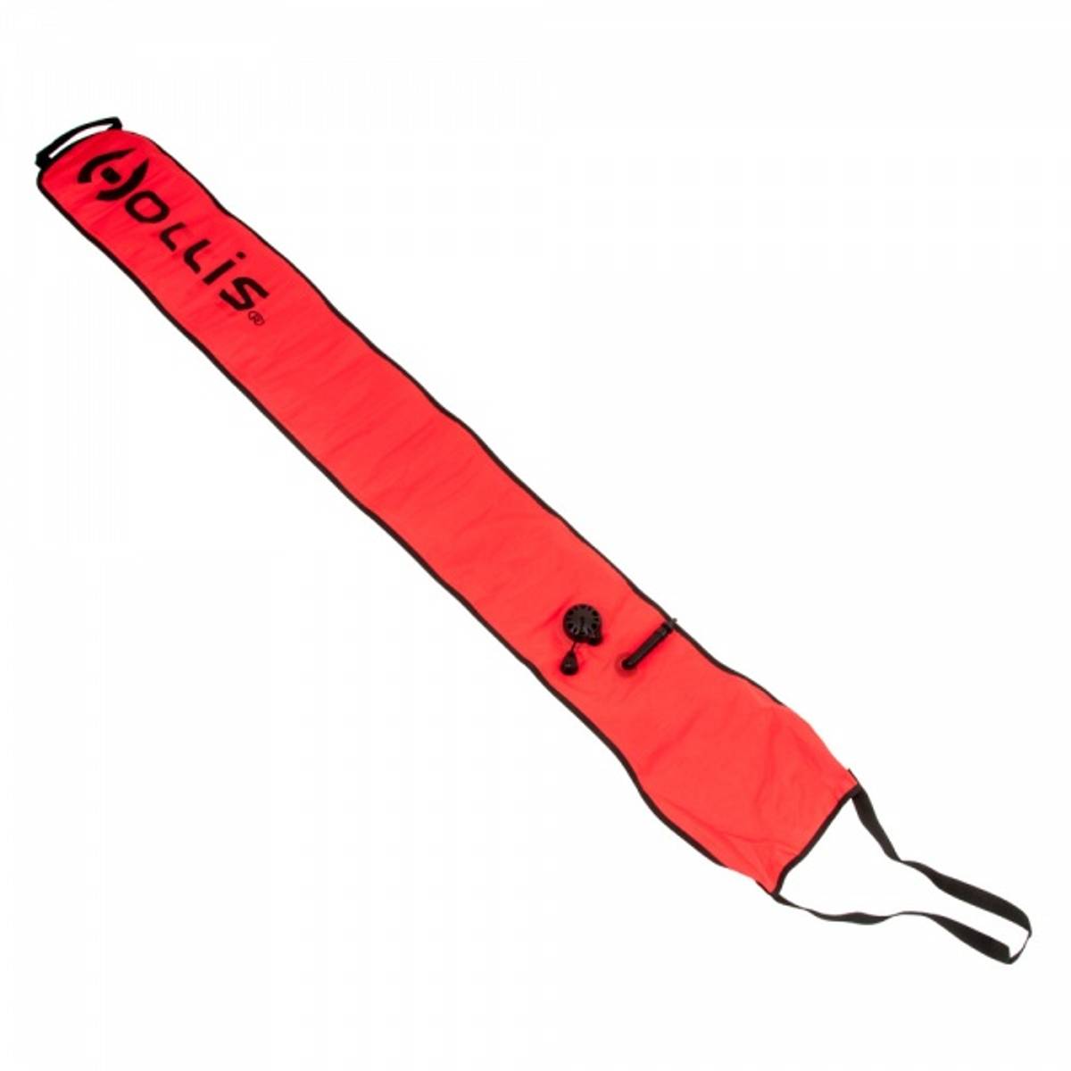 Markeringsbøye fra Hollis. Også kalt "deco bøye", og SMB blant dykkere. Signaliserer og markerer i overflaten at det er dykkere i vannet. Overflateberedskap vil også lettere kunne få øye på deg.