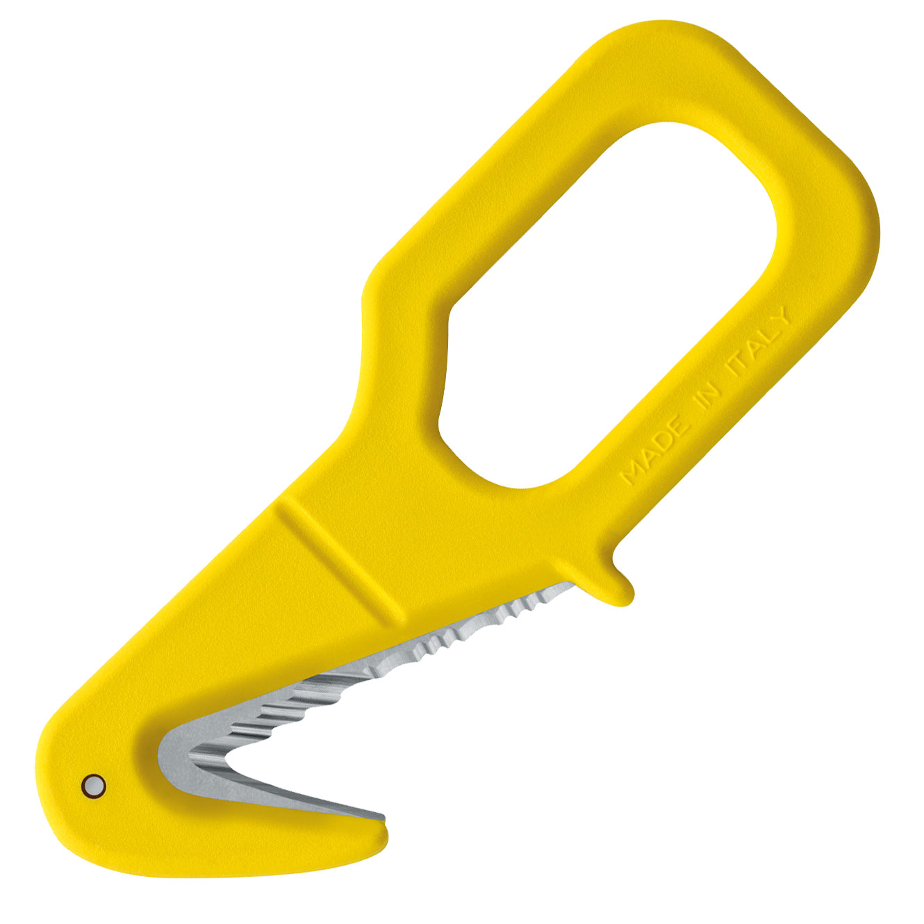 Solid redningskniv og linekutter fra Mac. I forhold til mange andre linekuttere på markedet så har TS05 et veldig stort håndtak som gjør det lett å få grep selv tjukke votter i vanskelige forhold. Det går også raskere å få den ut av sliren. Den er lett i vekt og er meget skarp. Skjærer gjennom tau og tekstiler som det skulle vært smør. God stålkvalitet og åpenbart rustfritt stål.