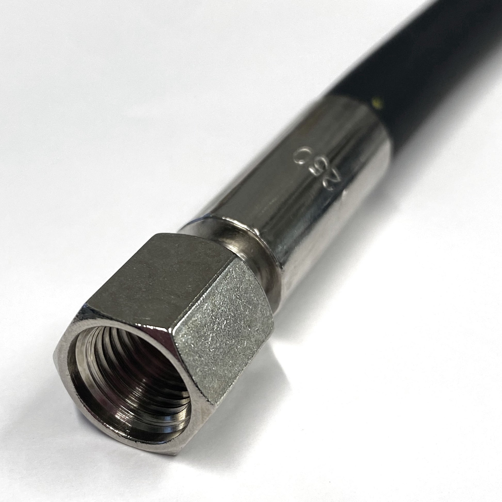 Klassisk manometerslange for høytrykk i sort gummi. Standard 7/16 UNF-kopling. Løs slange til manometer.