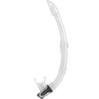 Den har også en patentert ventil fra Cressi som meget effektivt tømmer snorkelen for vann. Justerbart feste på siden, så den lett monterers på maskestrikken på dykkermasken. Effektiv hette og bølgestopper på toppen hindrer vann å komme ned i snorkelen, uten at den hindrer frie luftveier.