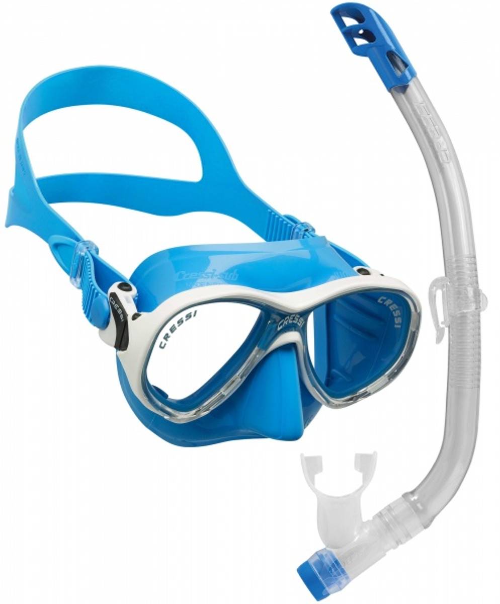 I Marea VIP settet får man; Cressi Marea Jr dykkemaske og Cressi Top snorkel. To produkter i topp kvalitet, som sørger for at barna får en knall opplevelse i vannet.