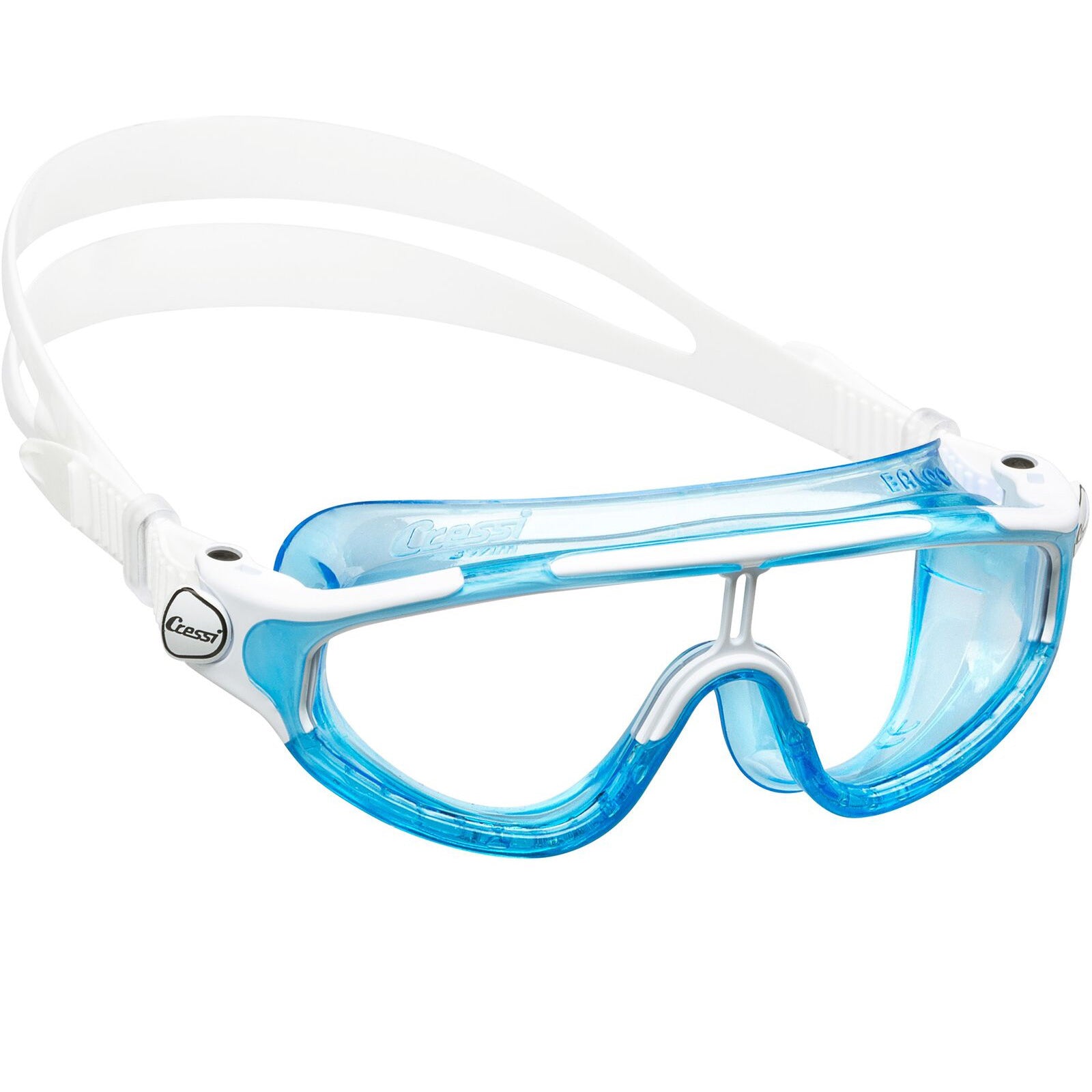 Passer de minste barna fra 2 til 7 år, med enkel justering i strikken. Cressi Baloo sitter som fast, behagelig og vil ikke lekke vann inn. Perfekt for aktive barn. Siden glasset er kurvet, vil ikke barnet føle det klaustrofobisk å ha den på. Glasset er omtrent uknuselig, riper ikke og er behandlet med anti-dugg.