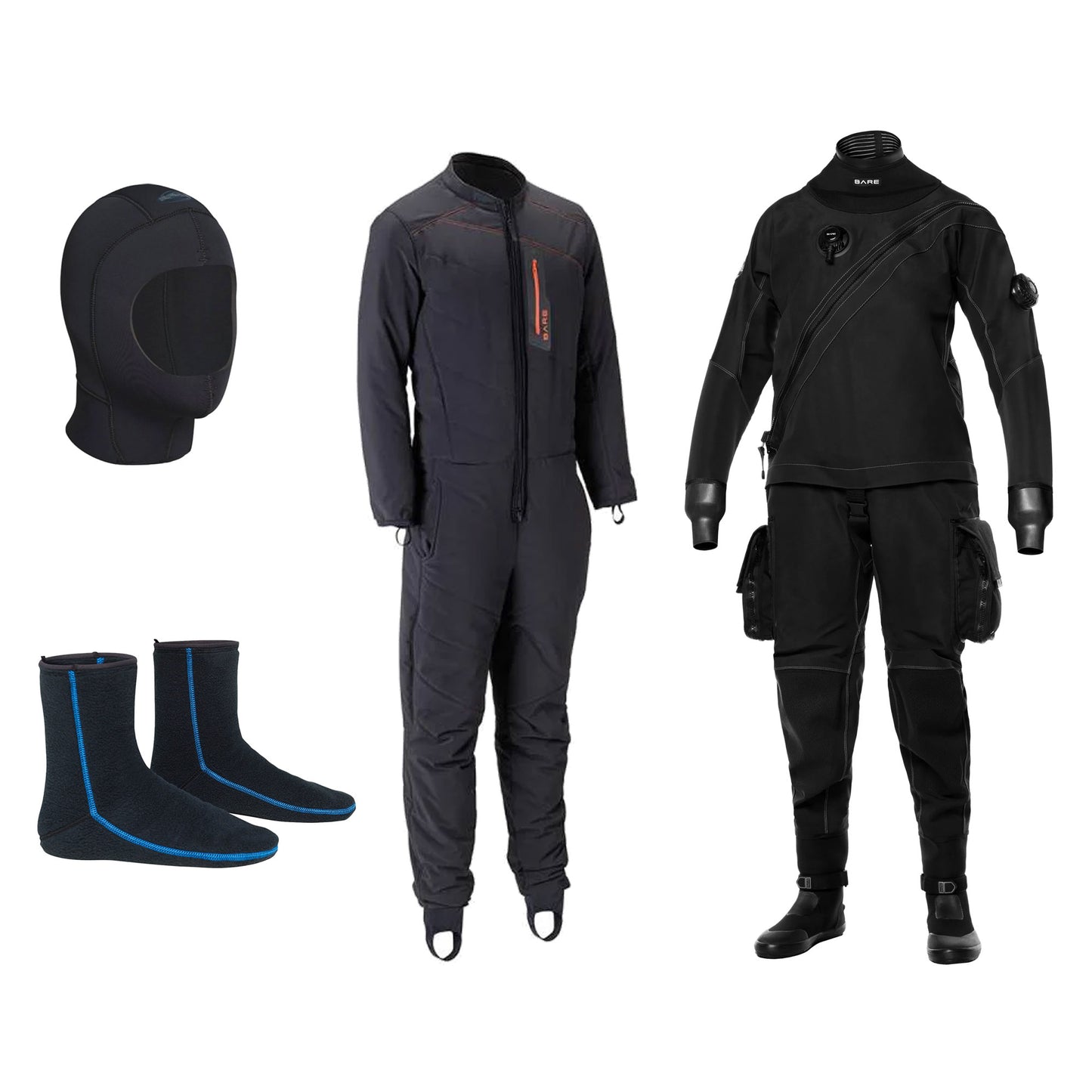 Denne pakkeløsningen er for dykkeren som ønsker en svært robust tørrdrakt og vår beste underbekledning. Pakken inneholder ogå hette og sokker.