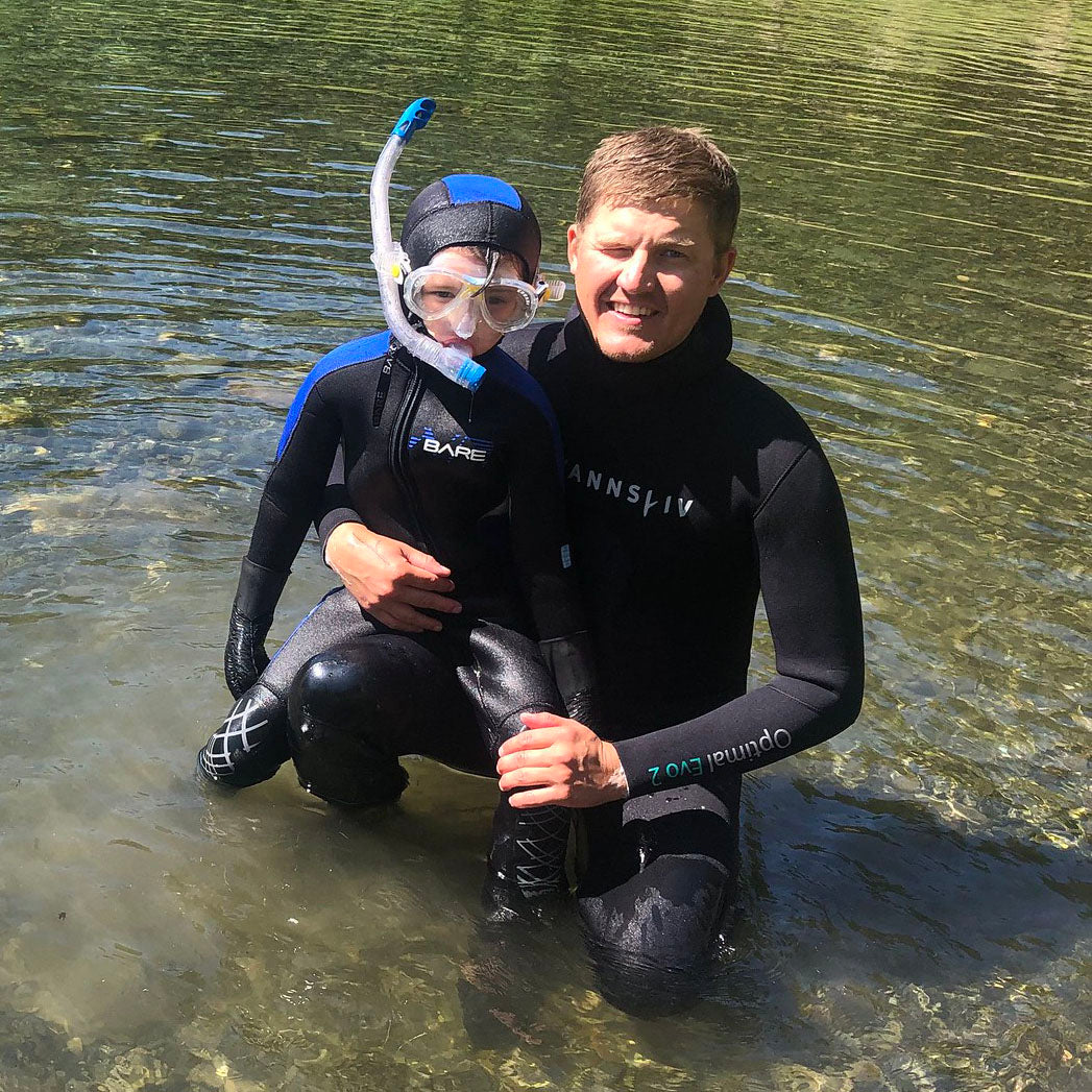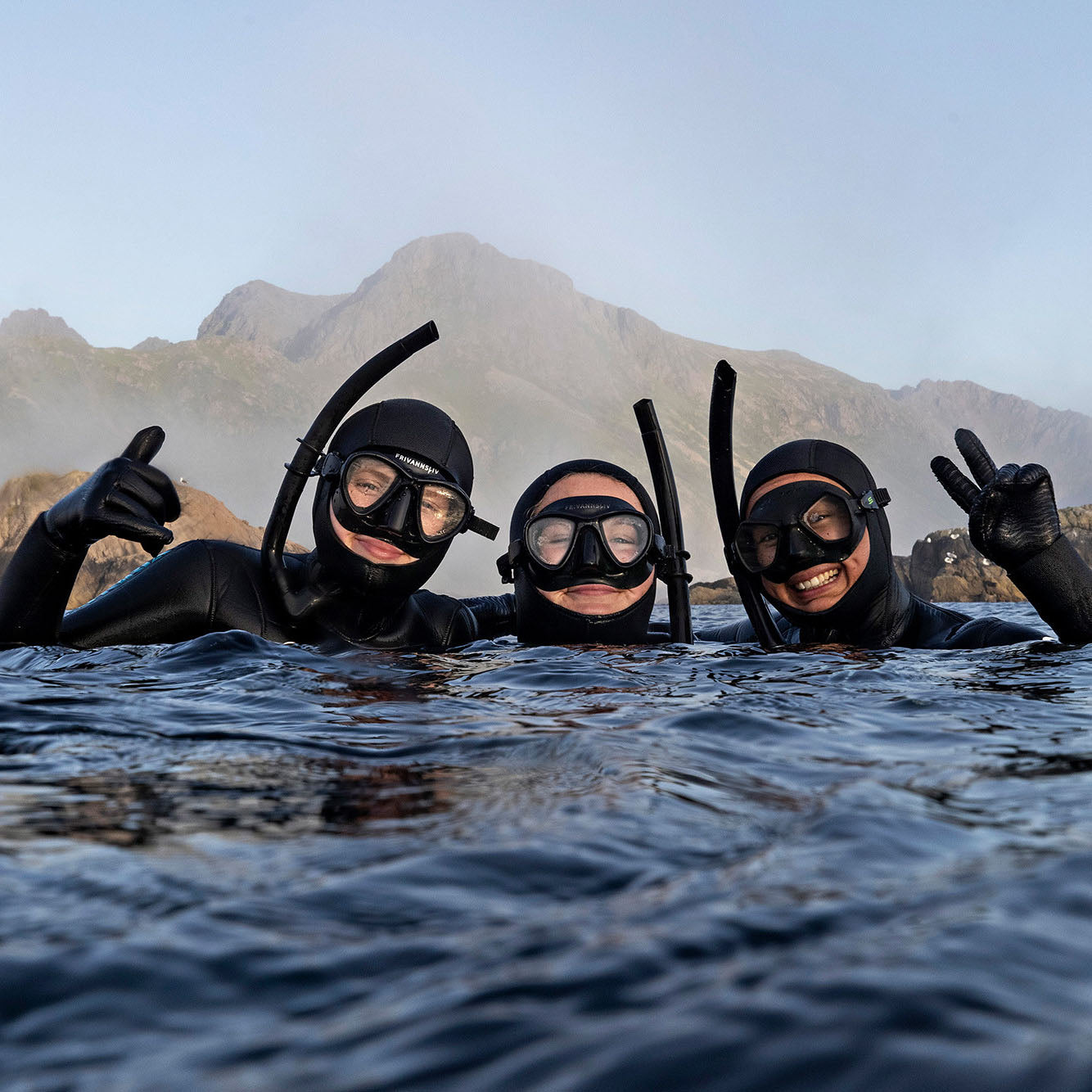 Denne pakken inneholder produkter som er langt varmere enn ordinære vannsportdrakter. Her kan du slappe av i vannet og flyte rundt uten å fryse :)