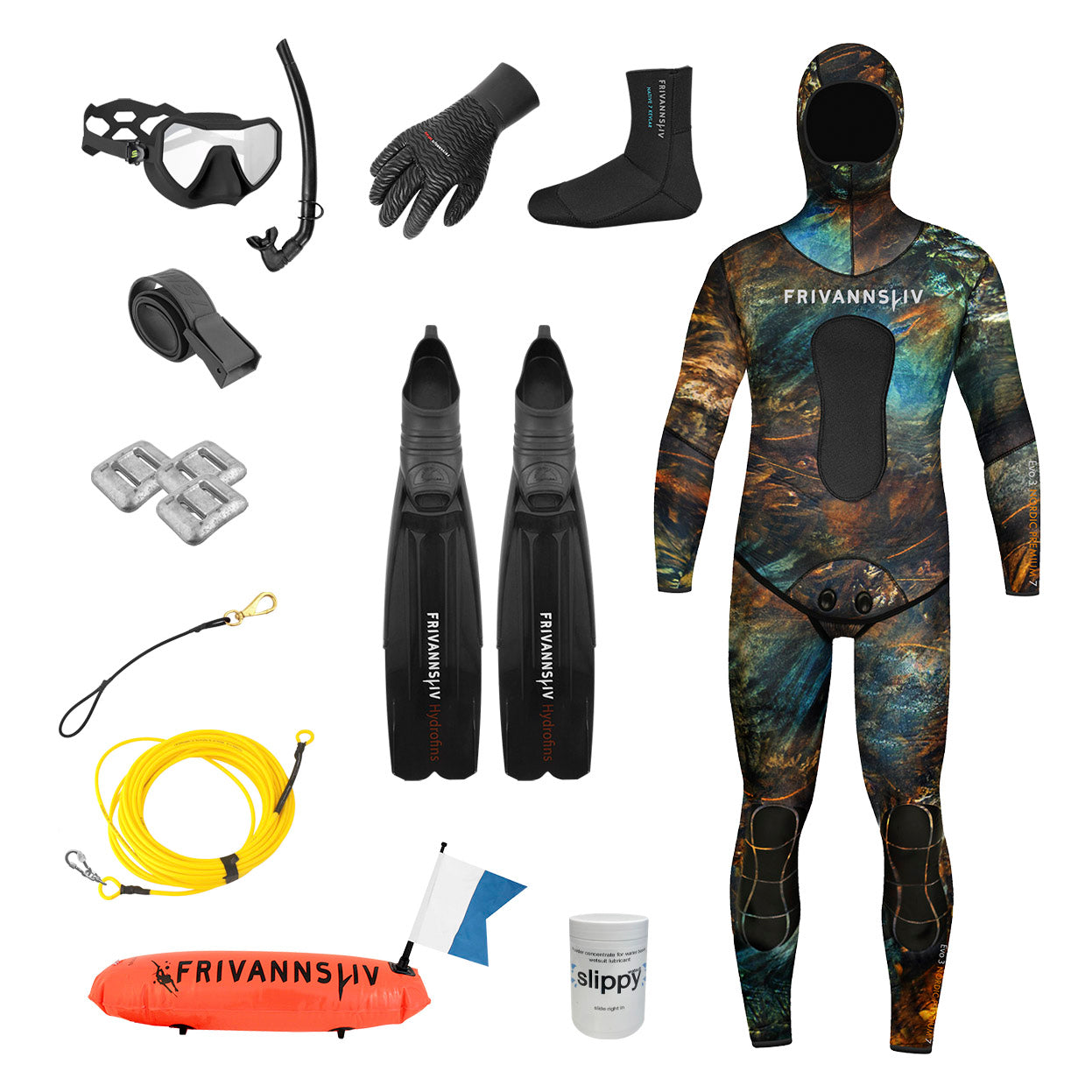 I denne pakken får du alt du trenger for å drive med fridykking i sommerhalvåret. Pakkene inneholder utstyr av svært god kvalitet, spesielt tilpasset norske forhold. Med en drakt i 5mm kan du oppdage alt det spennende havet har å vise deg. Normalt vil perioden mai til oktober være optimalt for denne utstyrspakken.