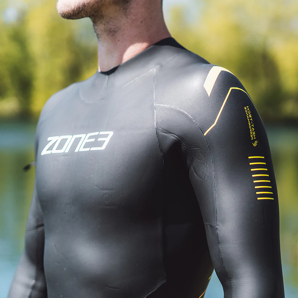 Zone 3 Thermal Aspect har en kombinasjon av 2,5mm - 4mm tykkelse så bena holder seg lavere i vannet og man får en generelt mer naturlig posisjon i vannet for brystsvømming.